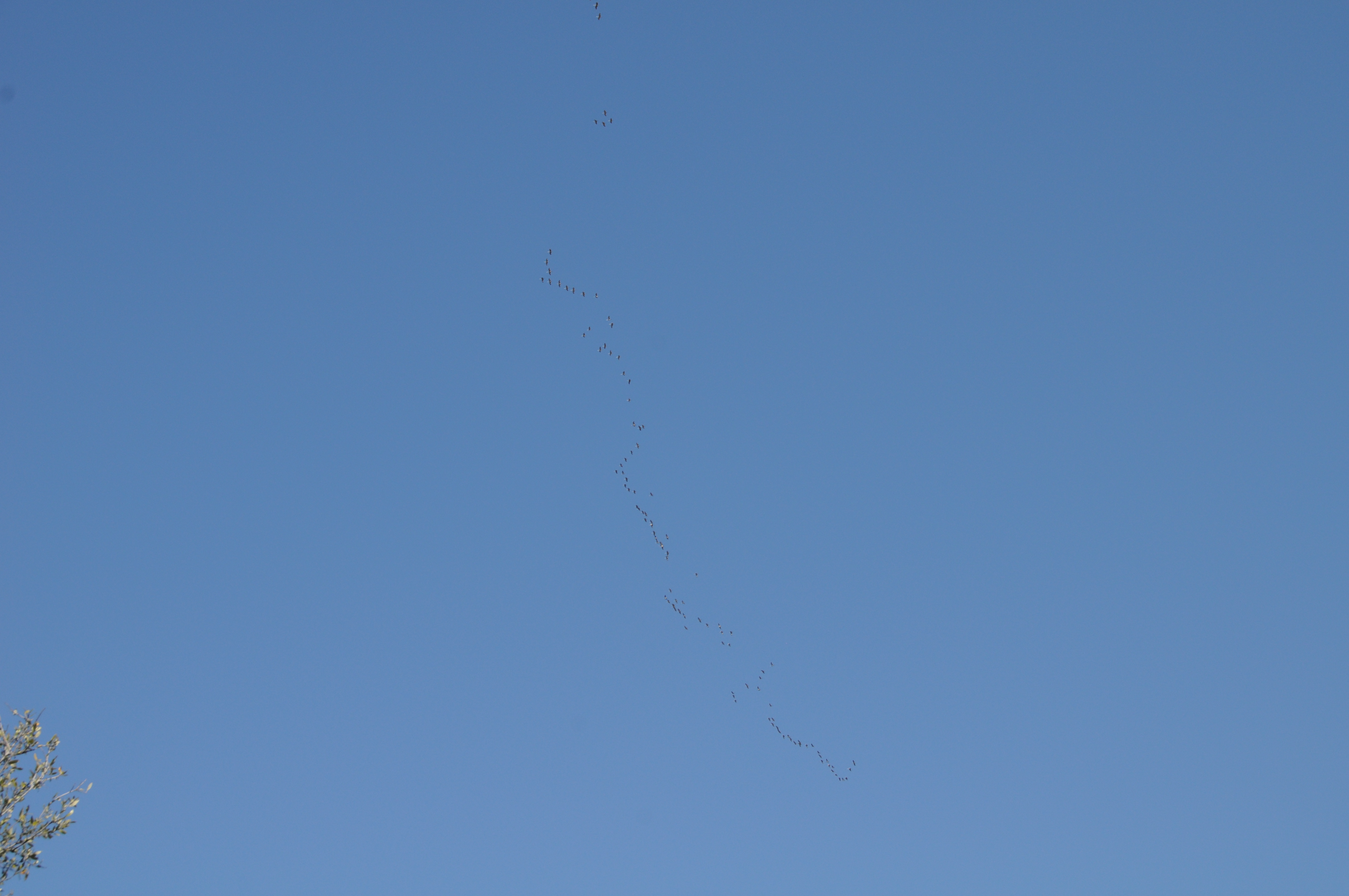 Evangeline, they are coming your way. I’ve not heard any more flocks and I’ve been out all afternoon long. So, from about 2:00 CDT, three flocks have come over. But, the sun hasn’t set yet. There may be more. They are a beautiful sight. What happened this afternoon was their altitude being higher and with the southeast wind they were going fast.