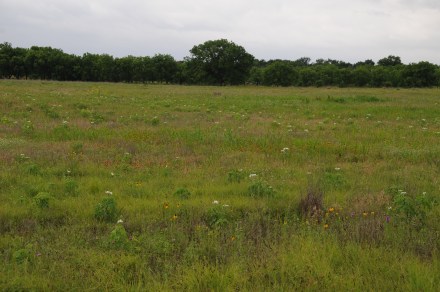 This is a stand of Indian Blankets with the Shelton Rock Hills (north and south) in the background. The direction of the camera is west. To the right (north) is The Grove and Salt Creek.