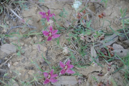 Here we have an unidentified plant and blossom. (See update for identification in next paragraph.) I first thought it a Skull-cap (Scutellaria drummondii), but I am not sure. Like my previous analysis regarding the Mariposa and Wine-cup, I must go back over to the pecan tree area and re-photograph and take a sample of the full plant, not merely the blossom. One of the interesting aspects of posting this photograph and determining genus and species is that I look more closely at the photograph to make sure I get it right, and upon looking closer at the photograph, I see bean pods that I did not notice while I was in the field — see if you can spot the pods.