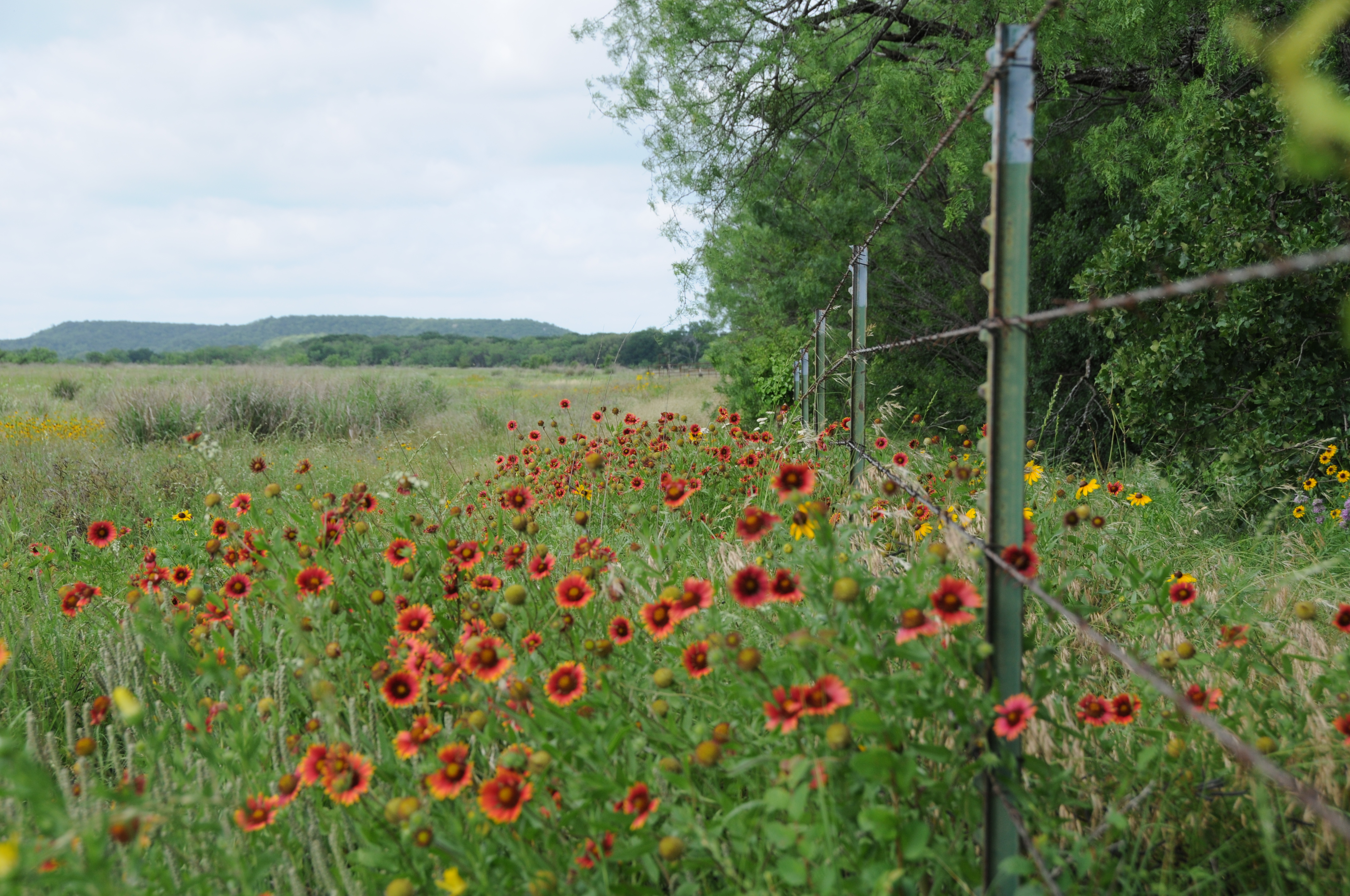 This is a stand of Indian Blankets with the Shelton Rock Hills (north and south) in the background.  The direction of the camera is west.  To the right (north) is The Grove and Salt Creek.
