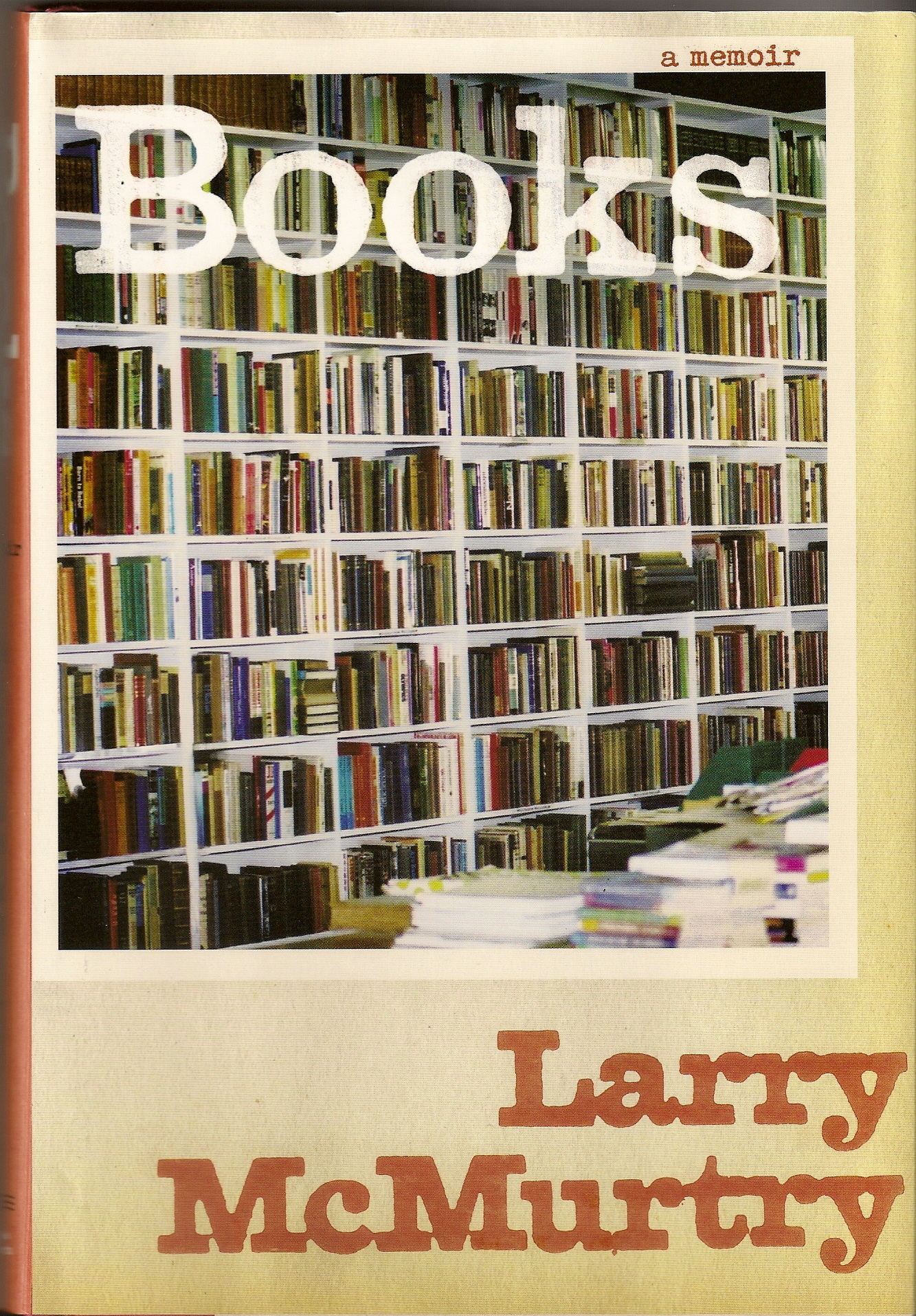 Last evening, I finished reading Larry McMurtry’s Books: A Memoir (2008).  He sustained a theme about books in his life, defining himself in book lingo as antiquarian, second-hand bookseller and book scout.  A few years ago, he settled back in his hometown of Archer City, Texas, bringing his Georgetown bookstore business into the small Texas town, about two hours away from where I live.  The name of his bookstore in Archer City is the Blue Pig (merged with his Georgetown Booked Up bookstore) from the notorious pigs in Lonesome Dove.  He owns six buildings on the square in Archer City, five of them devoted to books, about 400,000.  At his home, he has a personal library of 28,000 volumes that began with his original nineteen books as a boy.