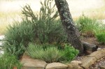 From left to right, our herbs include lavender, sage, basil, parsley and in the cluster under the live oak tree, several varieties of thyme and rosemary.