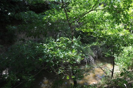 Along the creek bed next to the native grass pasture (Pecan Tree Pasture), pools of clear water stand under oak, pecan, elm, ash and hickory.  Willow and a few cottonwoods grow close to the water.  The temperature falls significantly under the canopy of trees.  The trees are vibrant.  Mustang grapevines erupt leaves, some vines for the first time in years.  This riparian swatch regrows.