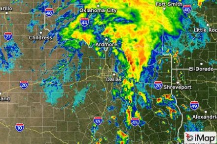 Tropical Storm Hermine, September 8, 2010, 3:05 p.m. CDT. Hermine has passed over our ranch and is headed northeast out of Texas. If you look west of Dallas about 100 miles, that is the location of Flying Hat Ranch.