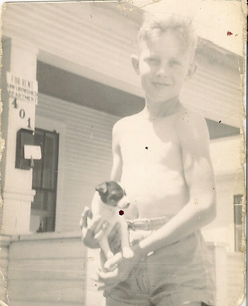 Jack with Spot at 401 Congress Avenue, Brownwood, Texas (ca. 1952)