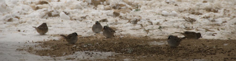 Star munches on hay and grain in the stable and I crunched some horse feed and threw it on the ground so White-crowned Sparrows could peck and fill themselves.