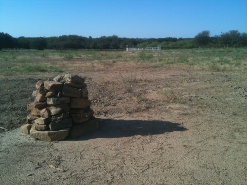 This summer I constructed a rock cairn to stack sandstone and petrified wood on the ranchito. A few feet up from the cairn in the photograph, I smoothed the soil with a hand rake. The smooth soil and the cairn mark the spot that Lilly*, known also by her registered name, Ima Lil Moore (APHA 111214), lies buried, six feet beneath the surface in a grave dug by the backhoe of a Stephenville, Texas, contractor. The cairn is about four feet in height and I pile smaller stones within the hollow of the cairn as I work through the day.