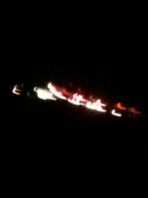 Last Friday night I drove back from Fort Worth, Texas, to the ranchito and took this picture on a hill with an iPhone 3G above the Brazos River as the traffic passed east to west, west to east, on Interstate 20, the major route between Fort Worth and Abilene.