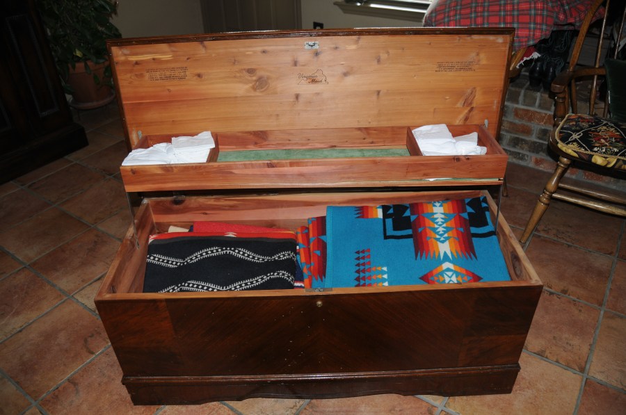Cedar hope chest with Indian blankets