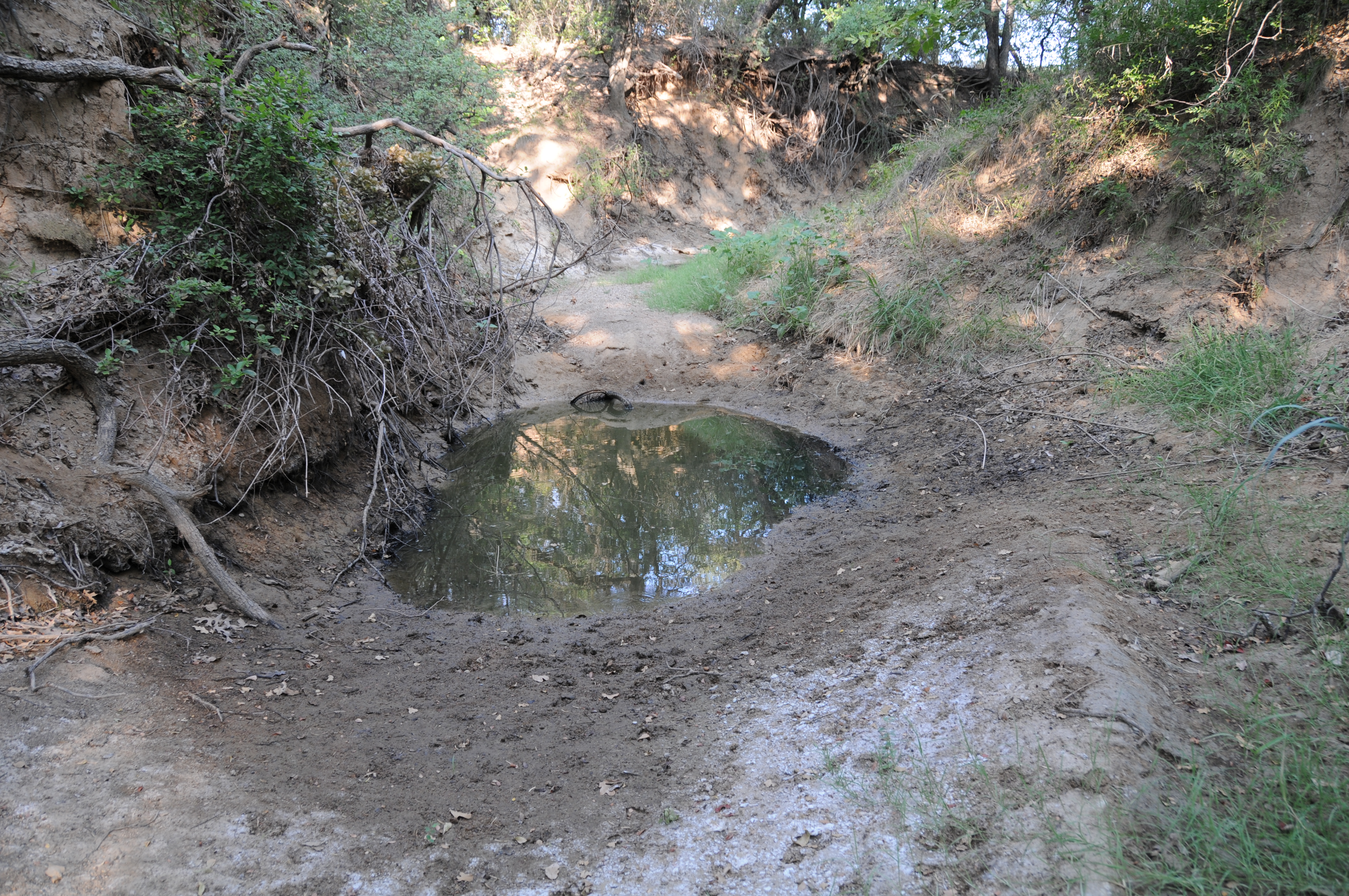 The water cache and seep along Salt Creek, north Erath County, Texas (July 27, 2011).