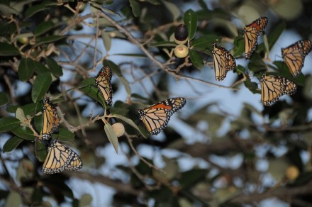 There are only nine Monarch butterflies in this roost, but it is a grouping that I photographed as the sun set this evening.