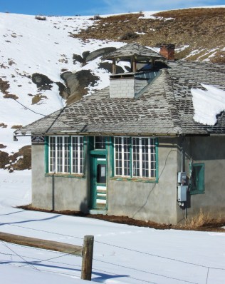 [Teresa, Teresa Evangeline blog, ‘At Home in My One Room Schoolhouse.’] …I almost forgot to tell you: when I crossed over into New Mexico from Utah on Sunday, in less than a quarter of a mile there were two crows and a coyote. The crows were standing over their dinner in the ditch, whoever the poor critter had been, and the coyote was trotting away from them, down in a hollow, across a snow-covered field….