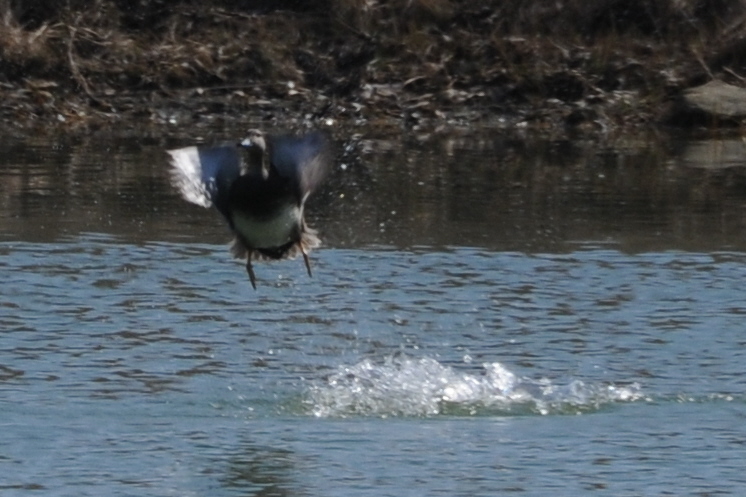 The other aspect that may be a factor in identifying the duck as Redhead is that they patter along the surface while getting underway. From the photograph above, you can see the traces of a patter? It all happened so fast when the duck took flight that I could only snap two pictures. (There is a camera feature to take rapid sequential shots that I should turned on.) The other photograph is in a previous post yesterday. It is the same duck.