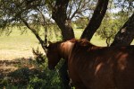 I have some photos about plants, animals, terrain and fossils I would like to show you. There’s always a photo opportunity here on Flying Hat. April offers some comforting snapshots about the place. There’s a lot of communication taking place, even with horses and yucca.