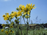 It is an ordinary graveyard, bordered by the usual spruces, and studded with the usual pink granite or white marble headstones, each with the usual Sunday bouquet of red or pink geraniums. It is extraordinary only in being triangular instead of square, and in harboring, within the sharp angle of its fence, a pin-point remnant of the native prairie on which the graveyard was established in the 1840’s. Heretofore unreachable by sythe or mower, this yard-square relic of original Wisconsin gives birth, each July, to a man-high stalk of compass plant or cutleaf Silphium, spangled with saucer-sized yellow blooms resembling sunflowers. It is the sole remnant of this plant along this highway, and perhaps the sole remnant in the western half of our county. What a thousand acres of Silphiums looked like when they tickled the bellies of the buffalo is a question never again to be answered, and perhaps not even asked.