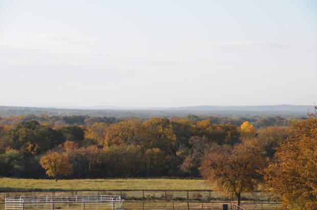 Between the house and barn is a distance of 300 feet. The house is about fifteen to twenty feet higher than the barn, providing a panoramic view of our countryside — Sims Valley, Upper Salt Cove, Twin Mountains, Salt Creek and Barton Creek. From house to barn, I see yellow butterflies feed on small white flowers. Acorns from the Live Oak trees continue to fall on the ground, making a crackling sound, and on the slope down from the house the acorns are like marbles under my boots so that I step gingerly lest I slip and fall. Small birds flit about the underbrush and yucca. I walk into the barn alleyway and sit down on a step-up crate that I have to climb on — like a small ladder — to mount horses.