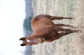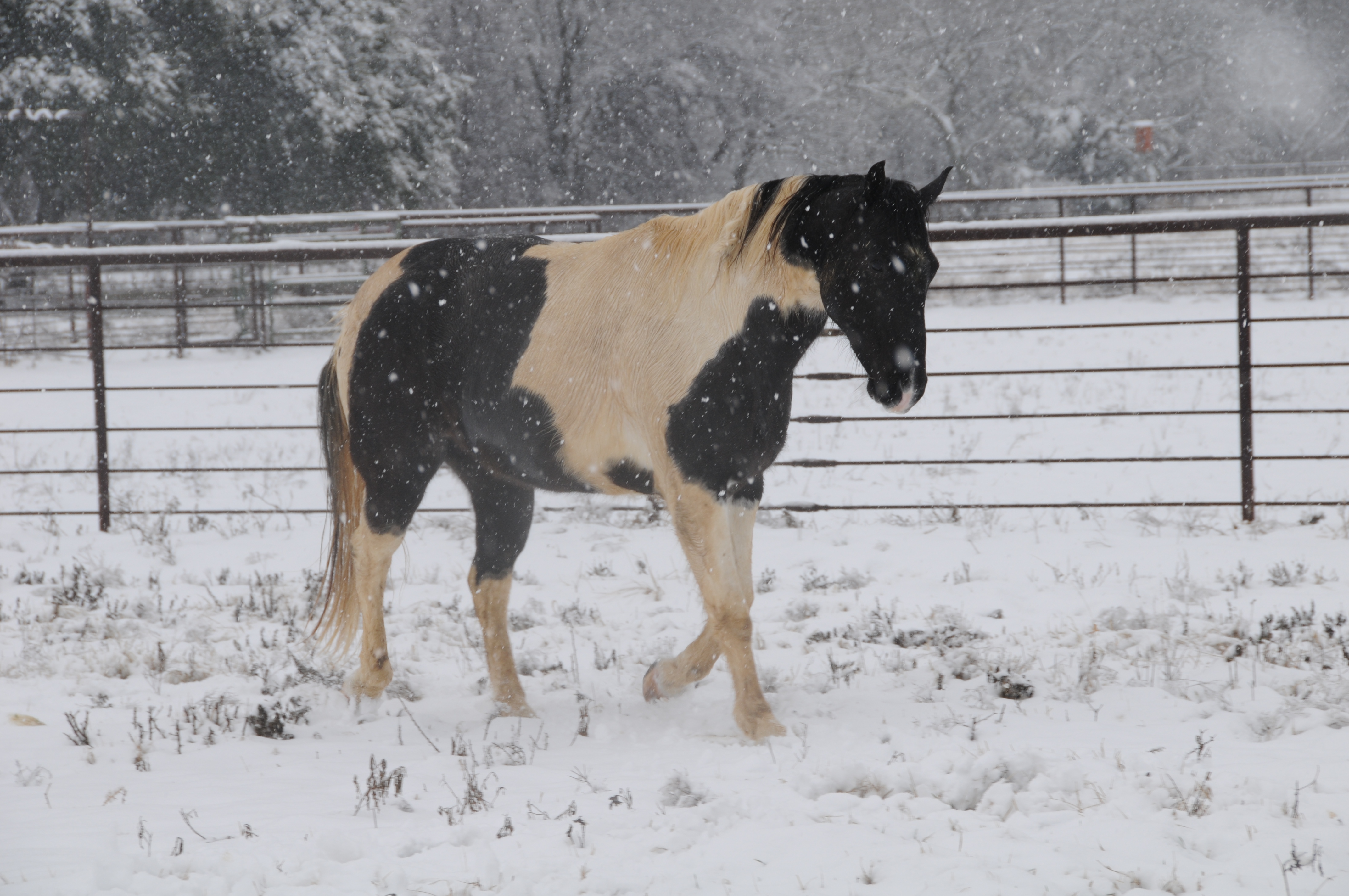 Star is a gelding and the baby-sitter for Shiney. Star and Shiney inhabit the large outdoor arena and are given to playing many games of “Gotcha,” a variation of tag. Star is a large horse. I often refer to him with affection: The Beer Wagon Horse. Star is the son of Lilly. Star is known far and wide as the levitating horse of Flying Hat — check a previous post this winter on the blog.
