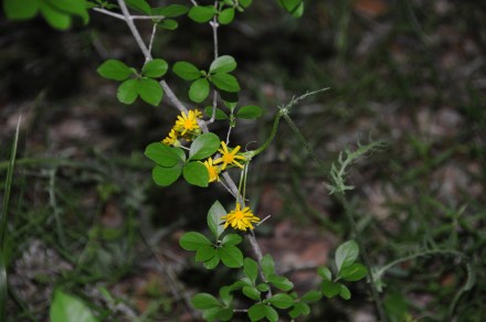 I have continued to photograph each new flower I see on the ranchito.  I’ve not identified all of them, but they have been photographed.  Yellow predominates as blossom color.  Here are clover with yellow blossoms and a pale-leaf yucca whorl.  The pale-leaf I am confident in identifying, but as to clover, have you ever looked up how many clovers there are?  There are several genus and species listed on the Lady Bird Johnson Wildflower Center website.  This clover abundantly erupts on the ranchito.