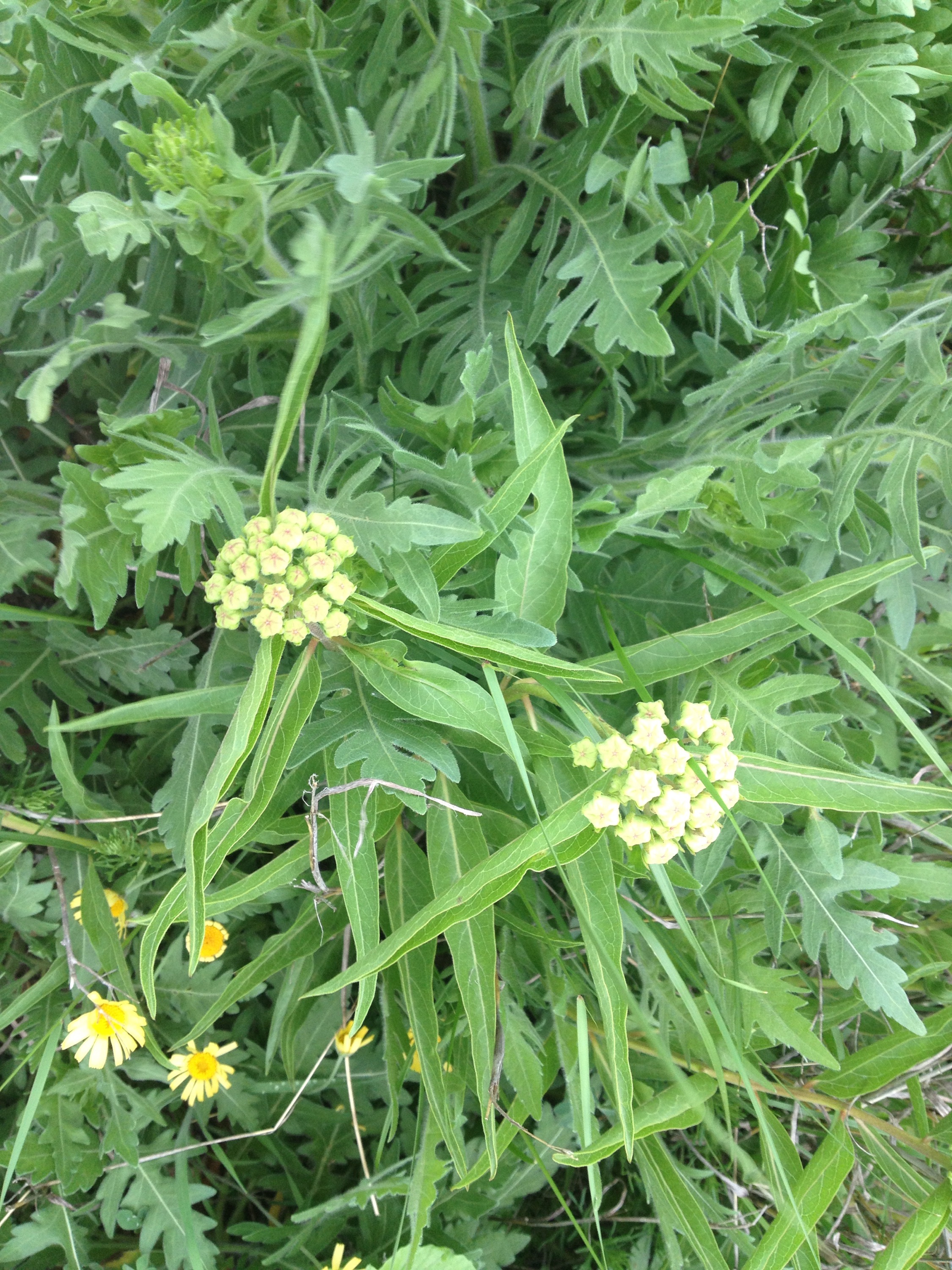 I have located three milkweed clusters since 2003 on my place–central Texas, Erath County. Today I sought the three clusters again, one directly in front of the house, one alongside the road to the barn, and the cluster in the far field, one-quarter of a mile away. I found only the cluster photographed above–the cluster beside the road to the barn.  I found no milkweed in the far field nor in the front yard.  I believe that this spring has been mild so far and some heat is needed to bring out other patches of milkweed. Today, as I walked the fields, I discovered a large Monarch in the grove that soared out of the grass and into the sky above the trees.  A huge Monarch, one the largest I have ever seen.  Then as I finished my field trip, in the front yard, a Monarch flitted above the cut-leaf daisy and lawn grass. Two Monarchs, one patch of milkweed that has ten clusters of blossoms (you can only see seven in the above photograph)–definitely an event to be recorded for 2015. I will continue to monitor the milkweed and Monarchs, posting the field trips I take to far and near fields on my place.